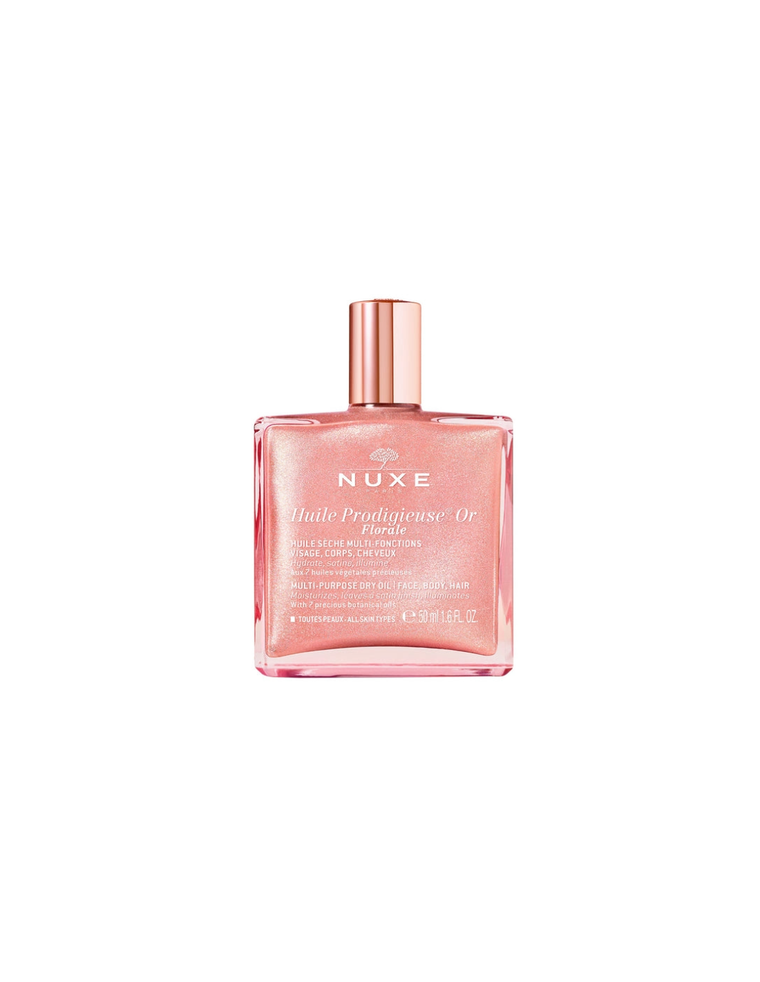 Descubre el cóctel mítico de 7 aceites preciosos 100 % vegetales de Huile Prodigieuse Florale en su versión Or. Este aceite seco con reflejos de nácares de origen natural procura un irresistible brillo oro rosado iridiscente a todos los tipos de piel. Hidrata, satina e ilumina en un solo gesto rostro, cuerpo y cabello. La piel está sublimada, suave y sedosa, sin acabado graso. Su eficacia está probada: tras la 1.ª aplicación, la piel está satinada y sublimada para el 95 % de las usuarias. Su textura con tacto seco inimitable se presenta en forma de frasco cuentagotas. En cada aplicación, la fragancia con notas florales y alegres de este aceite deleitará los sentidos con sensaciones chispeantes y luminosas.