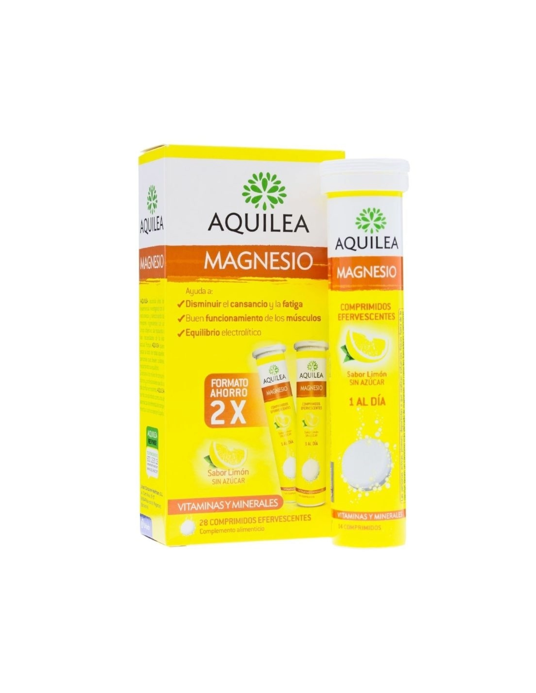 Magnesio Aquilea efervescente te aporta en un solo comprimido efervescente al día el 80% de la Cantidad Diaria Recomendada de magnesio que necesita tu cuerpo para ayudarte a estar en plena forma, con un agradable sabor a limón.